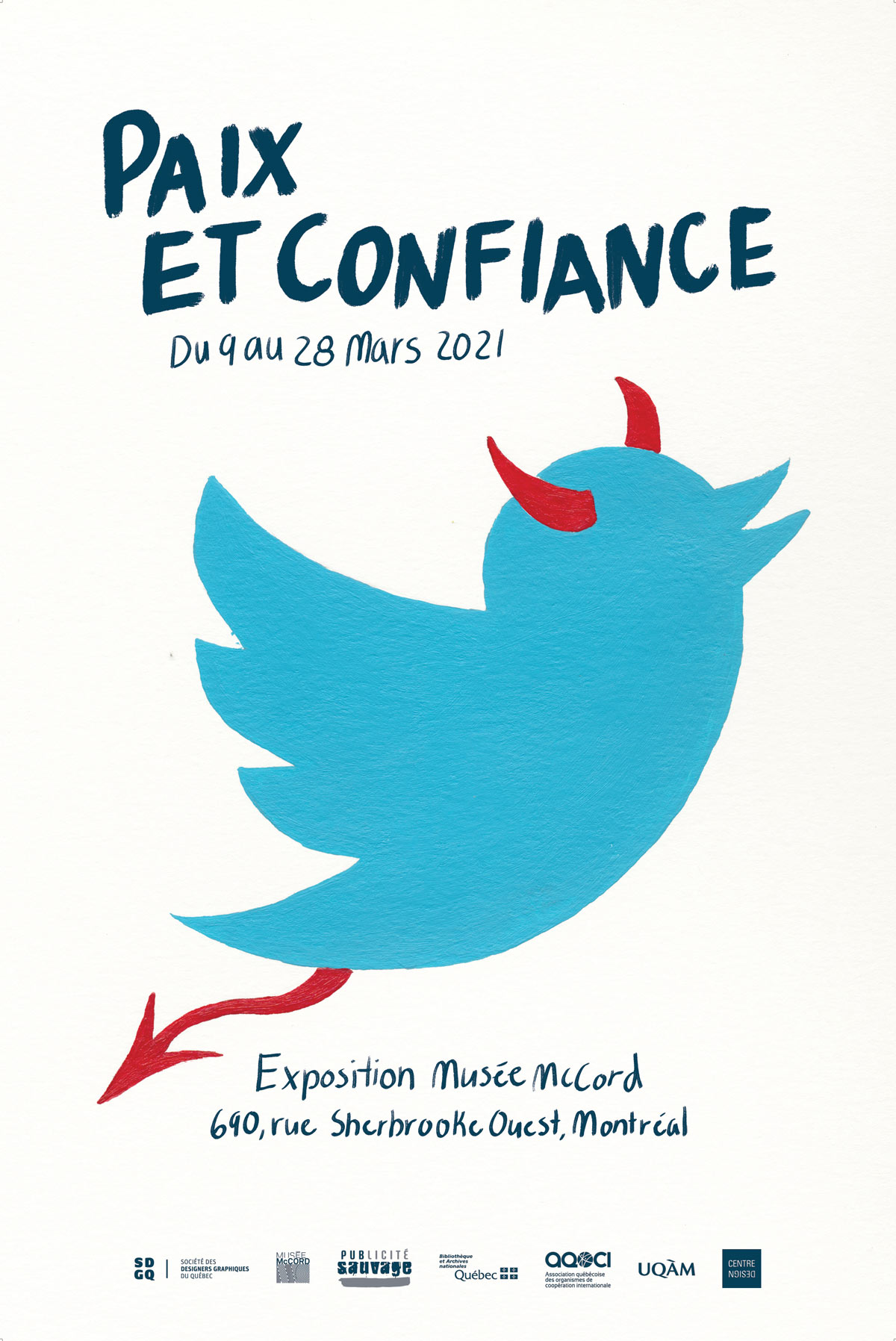 J’ai créé deux affiches portant sur le thème «paix et confiance» choisi par l’ONU en 2020-2021. Les affiches ont été conçues pour former un diptyque. Elles représentent la dualité des médias sociaux: promouvoir un pouvoir corrompu ou le contrecarrer.