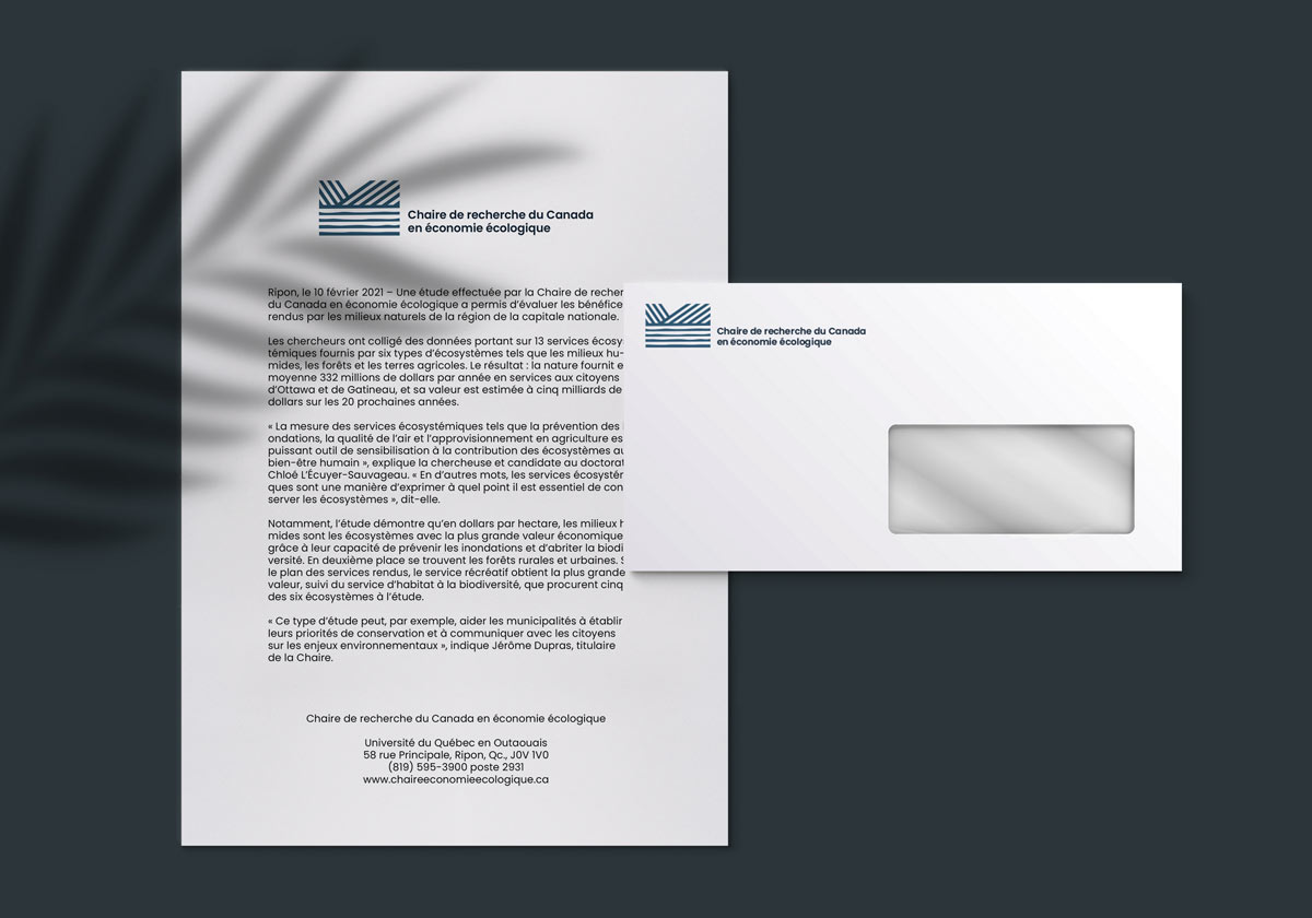 Papeterie pour la Chaire de recherche du Canada en économie écologique, 2019