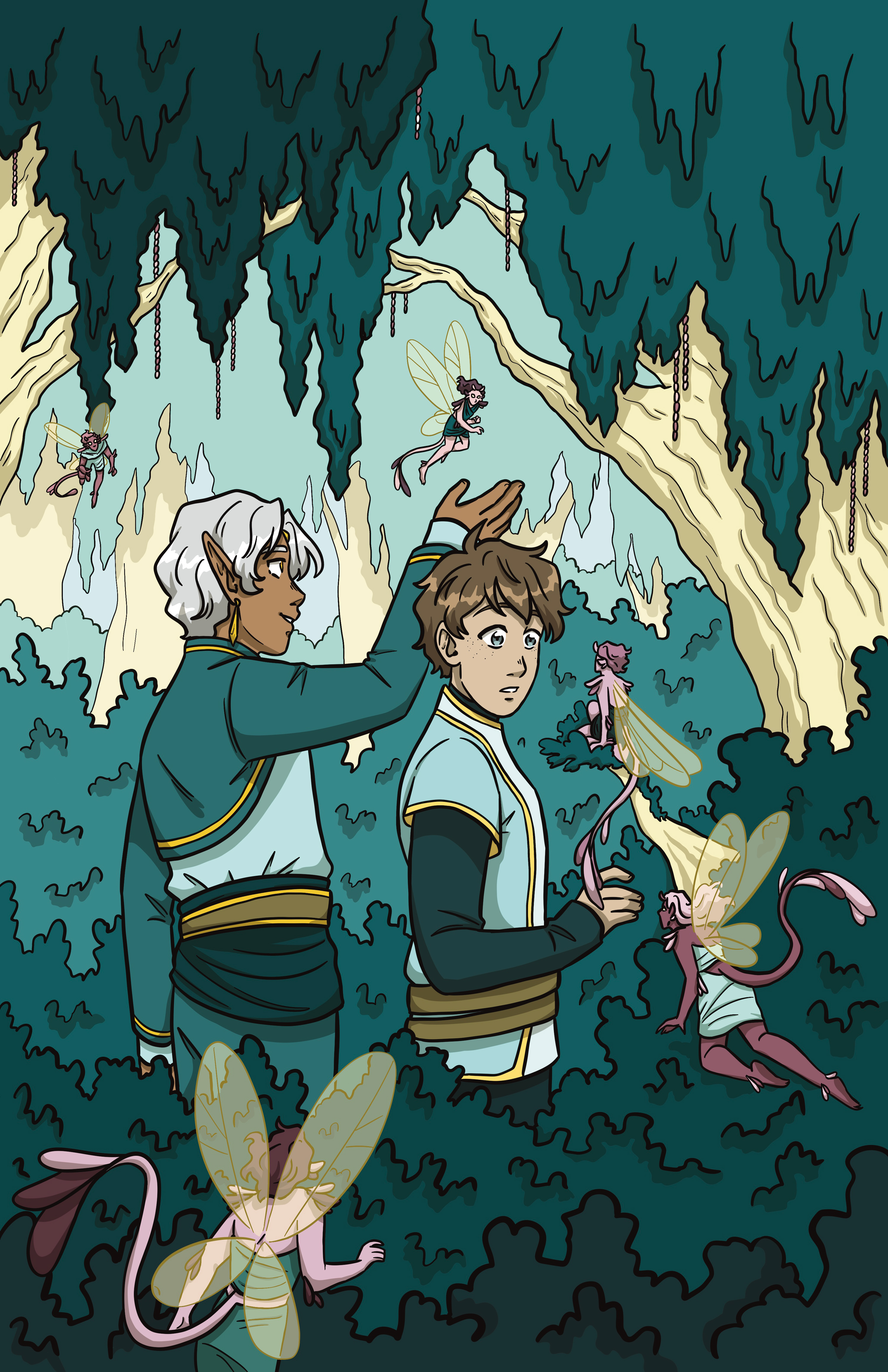 Cette bande dessinée constitue mon projet synthèse du baccalauréat. Elle raconte l’histoire de Redal, un‧e jeune elfe qui accomplit sa première mission hors de son village. Par mégarde, iel est séparé‧e de son groupe et se retrouve face à des créatures dont iel ignore tout.