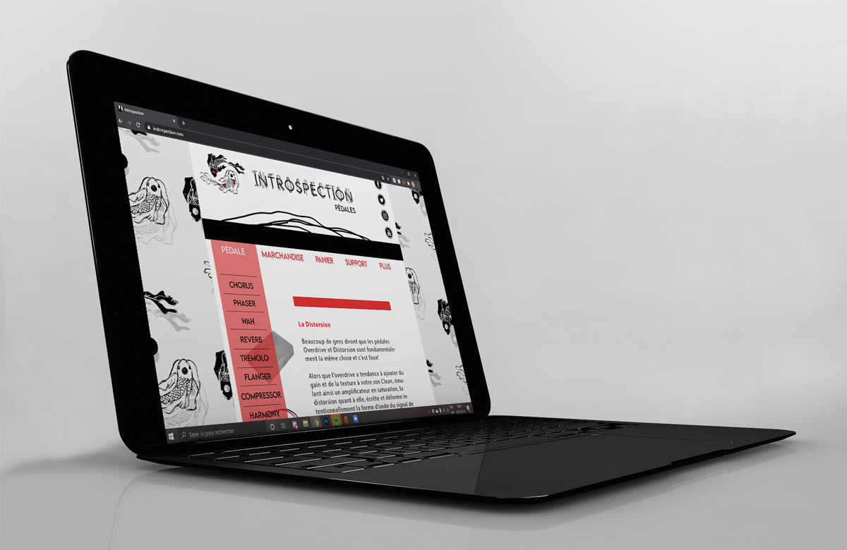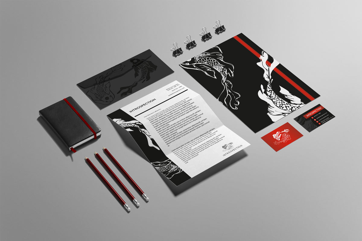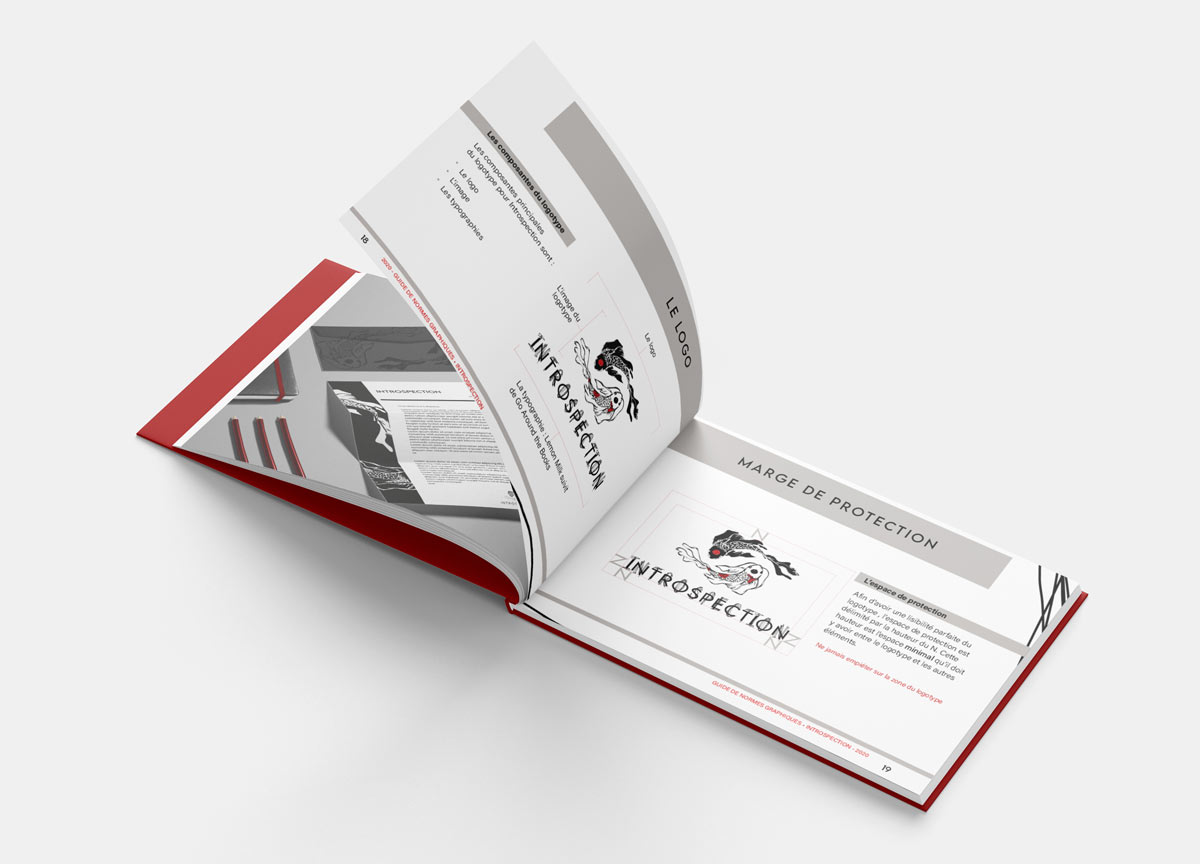 Dans le cadre d’un projet universitaire, Introspection a vu le jour. Ce projet visait la création fictive d’une compagnie de pédales de guitare. Dans ce cadre, j’ai conçu l’ensemble de l’image de marque de la compagnie. La conception d’un guide de normes a complété le mandat. Les sources d’inspiration pour ce projet furent le yin et le yang et la carpe koï.