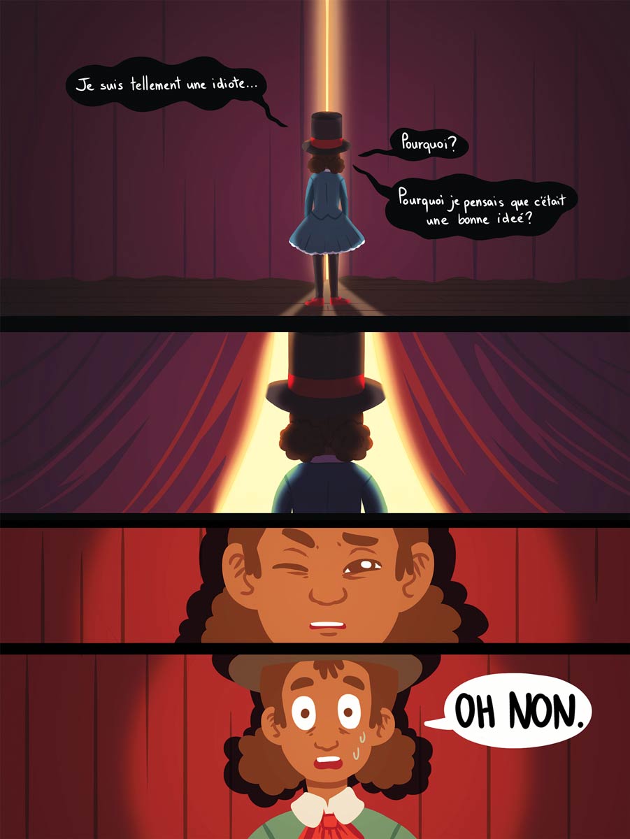 Avec Abra Kadabra!, j’essaie de montrer tout ce que j’ai appris de la BD durant mes trois ans d’études à l’UQO. Orienté vers les enfants, l’histoire raconte le premier spectacle d’Abra en tant que magicienne.