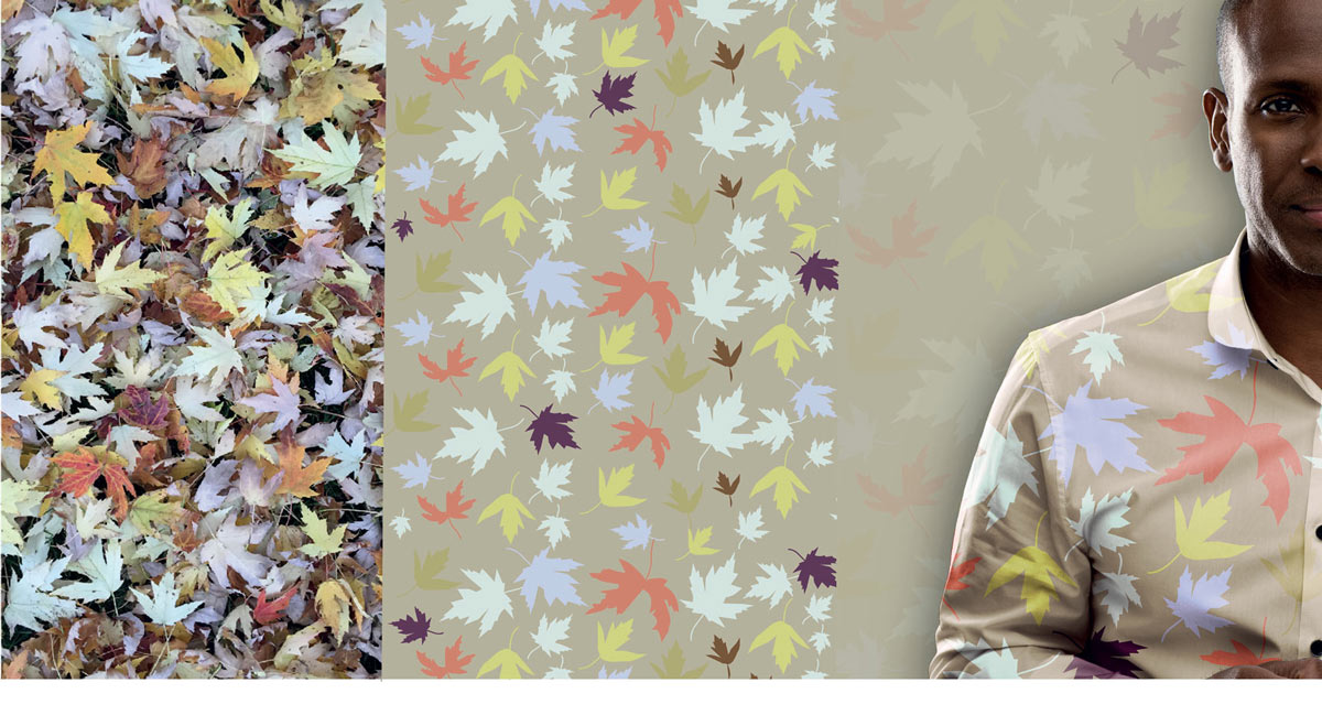 Concept créatif En plein automne, j’ai photographié ma cour afin de créer un motif. Cette pratique est beaucoup utilisée en Afrique par les annonceurs et les partis politiques pour véhiculer un message. Les tissus pagnes font partie de la culture africaine.