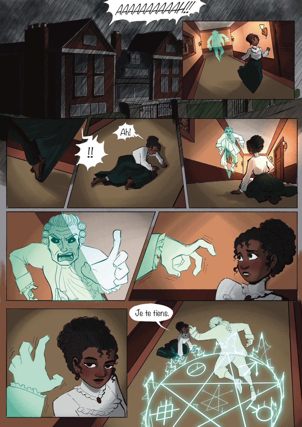Le tout premier jet de ce qui est devenu mon projet de synthèse, L’Institut Balthazard. Dans cette version, mes personnages travaillaient à leur compte au lieu d’une agence. Mon style a énormément évolué depuis cette planche.