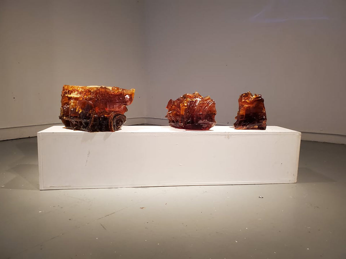 «Tête caramel» est un commentaire cynique sur la cristallisation du système économique capitaliste, sur l’anthropocène, ainsi qu’un clin d’œil à la culture no future. Si la voiture est un symbole ambulant de la destruction des écosystèmes, elle est, avec «Tête caramel», considérée plutôt comme ruine, comme souvenir d’une ère industrielle révolue à délaisser.