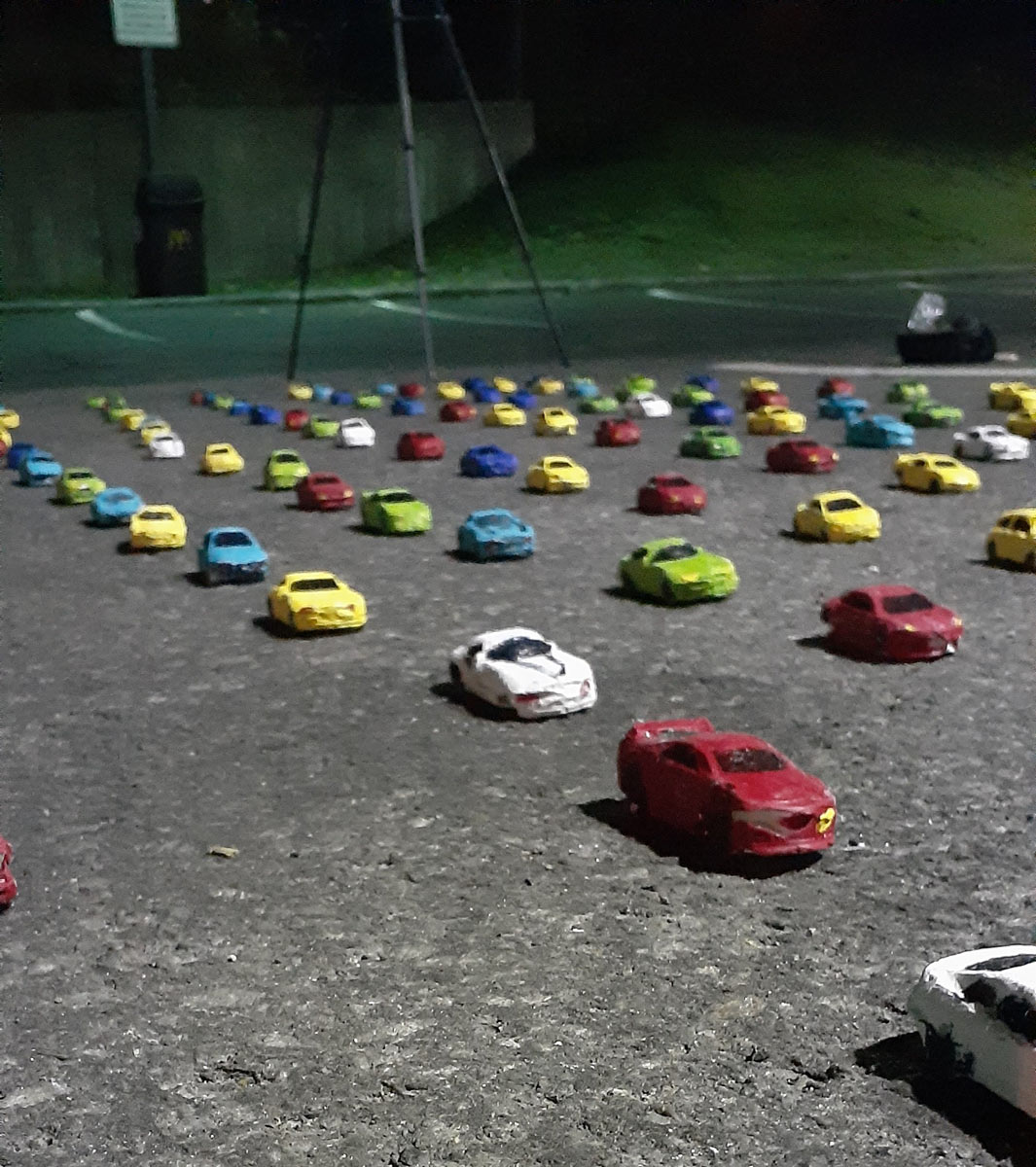Robot-sculpteur activé par chacune des voitures passant devant l’œuvre. Œuvre teintée de réflexions sur l’anthropocène, installation interactive qui s’inscrit dans une réflexion sur la circulation dans la ville et l’impact des voitures sur la transformation des milieux urbains.