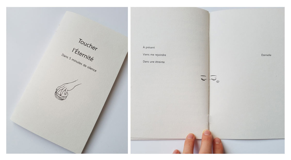 Une minute de silence, la main sur le cœur, les paupières fermées, dans cinq lieux différents. Toucher l’Éternité est une performance où une femme cherche à créer un moment de connexion avec elle-même, créant un temps d’arrêt dans son quotidien mouvementé. Ce projet s’interroge sur la place de la spiritualité dans la vie quotidienne.