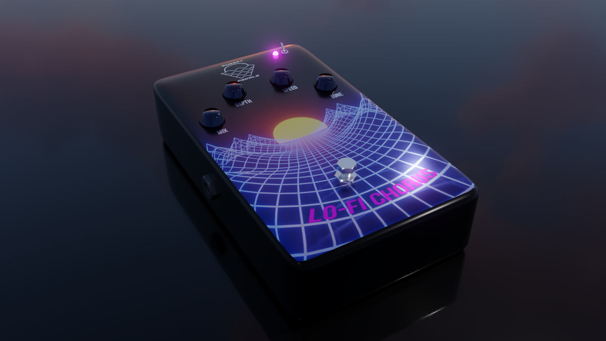 J’ai d’abord dû faire une recherche approfondie sur le sujet des pédales parce que je ne m’y connaissais pas. Cela m’a permis de cerner l’esthétique que je voulais adopter pour le branding et mes produits. J’ai fini par créer le nom de compagnie Sunset Pedals, qui s’inspire de l’univers de la musique Lo-Fi des années 80. J’ai ensuite conçu le logo, les designs et les mockups de mes pédales.