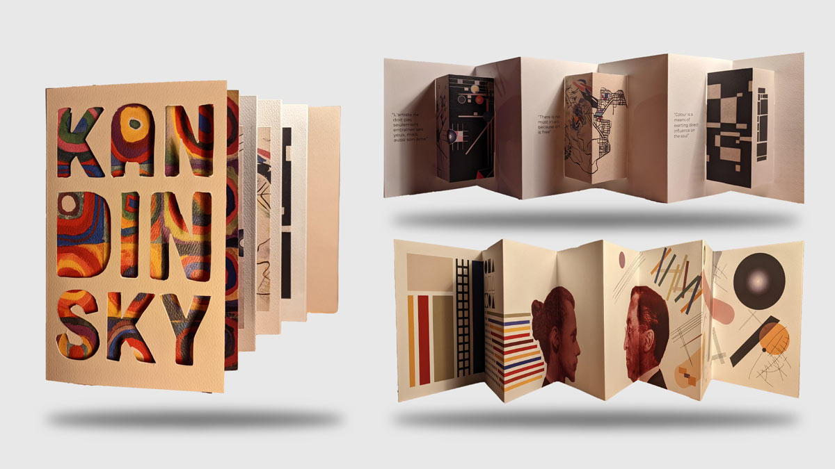 Le livre accordéon est une belle façon de créer un univers à partir d’une seule feuille de papier repliée en plusieurs sections. Ce projet représente un dialogue entre deux styles (le mien et celui de mon artiste peintre préféré, Wassily Kandinsky). C’est un cahier d’expérimentation artistique à la manière de Kandinsky, mais avec ma touche à moi.