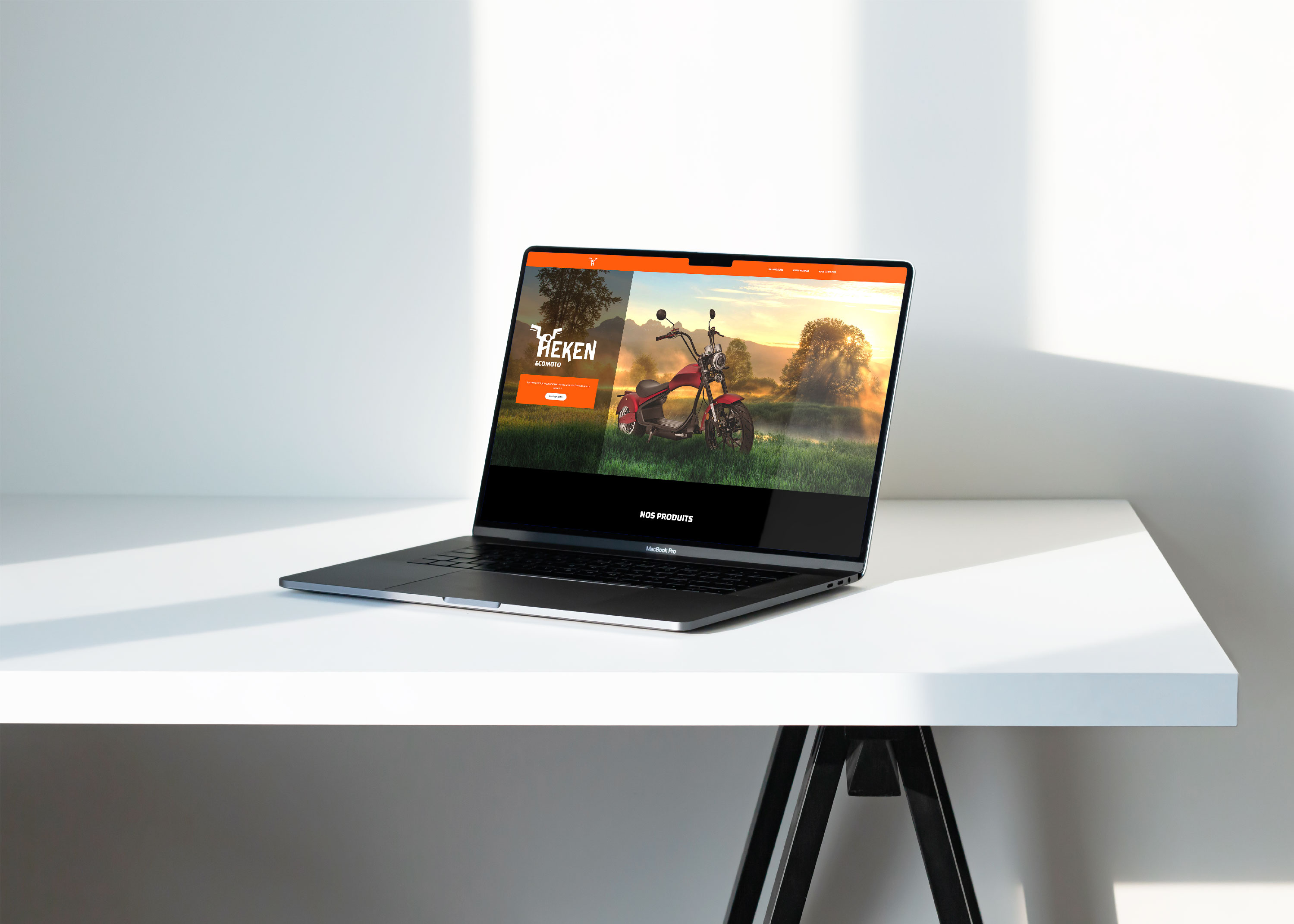 Projet d’identité de marque incluant un logo, un guide de normes, des cartes d’affaires, des applications 2D,3D et un site web pour une entreprise de vente de motos électriques en Outaouais. Les mots clés sont la nature, la liberté et le mouvement.