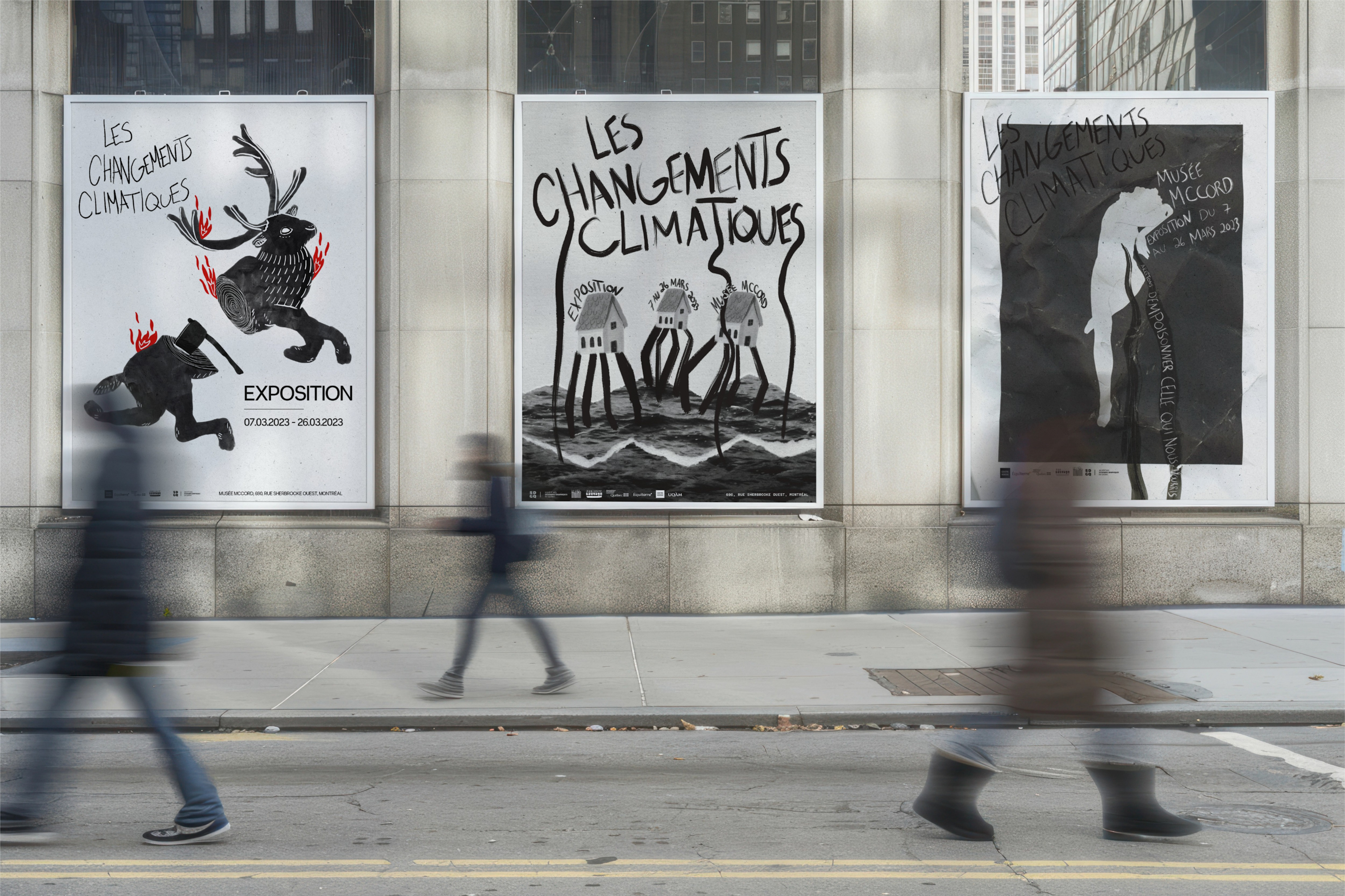 Série d’affiches sociales sur les changements climatiques. L’affiche centrale a été exposée au Musée McCord Stewart en tant que l’une des 15 finalistes de la bourse Marc H. Choko en 2023.