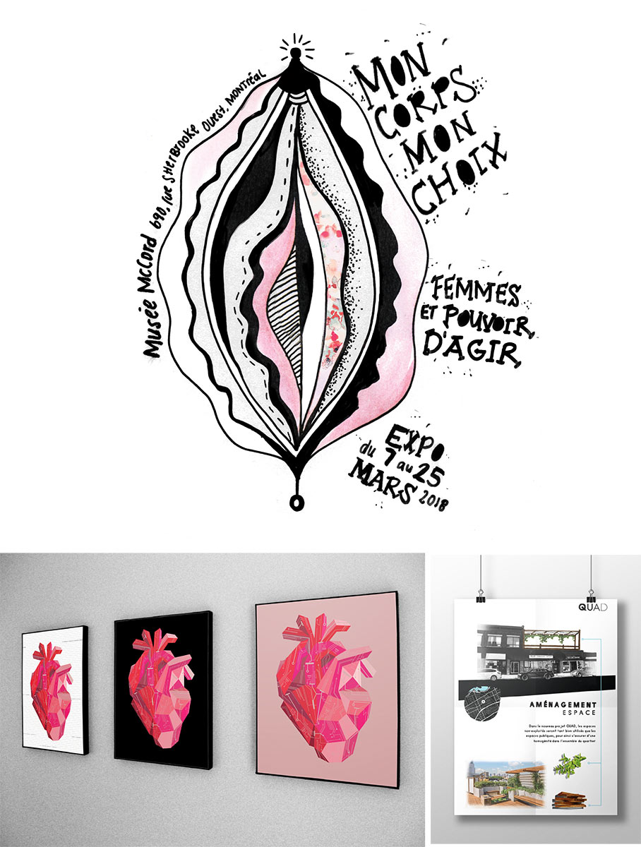 «Après mon DEC en Marketing, je me suis dirigée vers le baccalauréat en design graphique et je ne le regrette pas. Je suis une touche-à-tout. J’ai de l’intérêt pour la photographie, la peinture, le design intérieur et l’architecture. J’aimerais bien acquérir des compétences dans tous les domaines des arts a n d’avoir un maximum de possibilités. La vie est trop courte pour se contenter d’une seule passion!».