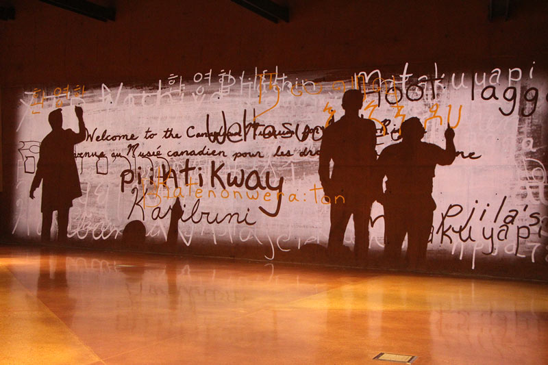 Panneau multimédia et interactif. Musée canadien pour les droits de la personne. Winnipeg. Photographie : Marie-Ève Perron, 2017 ©.