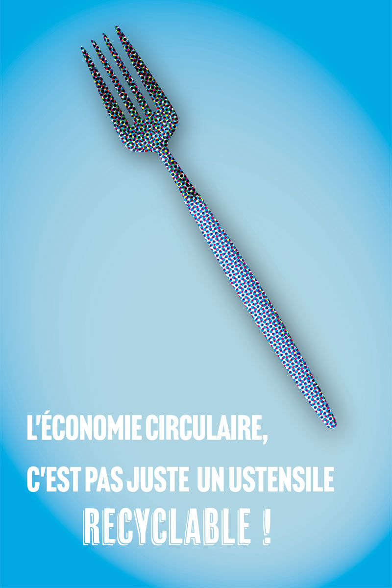 « L’économie circulaire, c’est pas juste un ustensile recyclable », Affiche, 2021