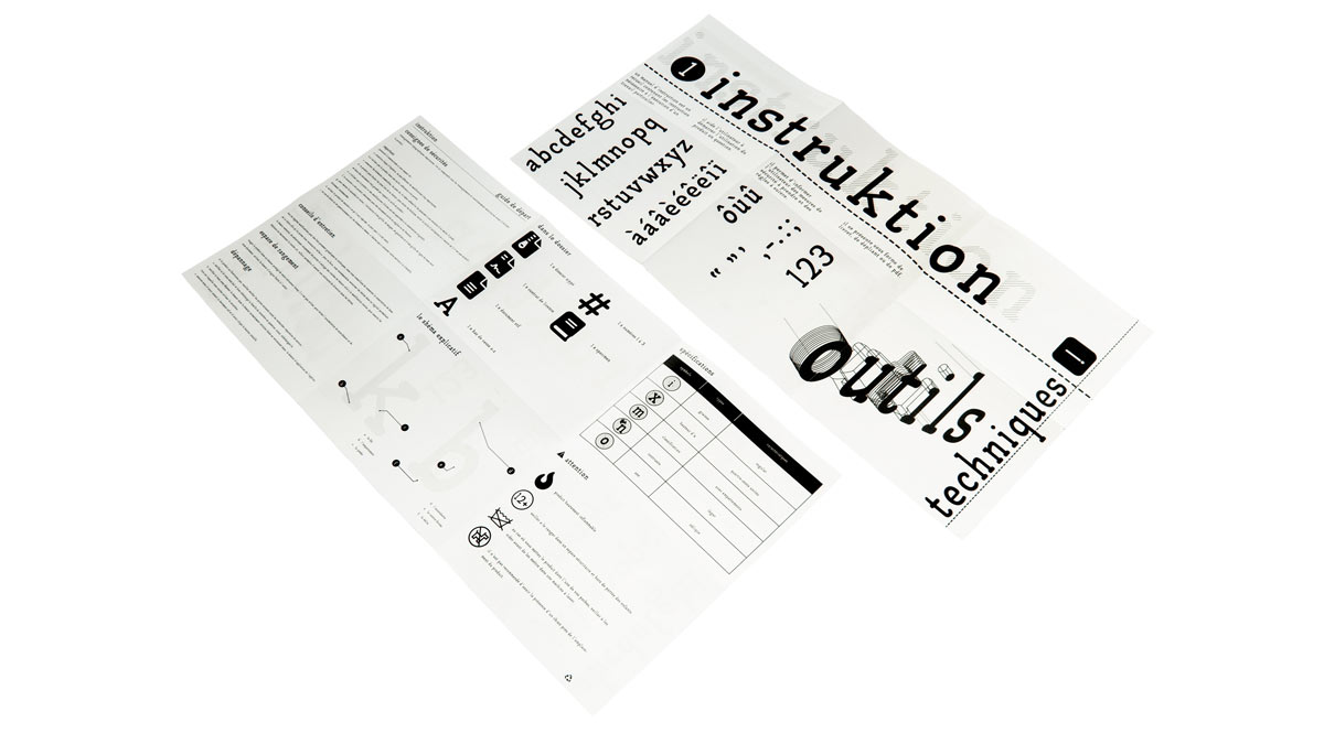 Le mandat du projet Instruktion consistait à créer un caractère typographique pour les légendes de manuel, qui pourrait être lu facilement. Des éléments formels tels que le contraste entre les pleins et déliés, la hauteur des ascendantes et descendantes, les pièges à encre et les empattements ont été étudiés et travaillés en lien avec ce mandat.