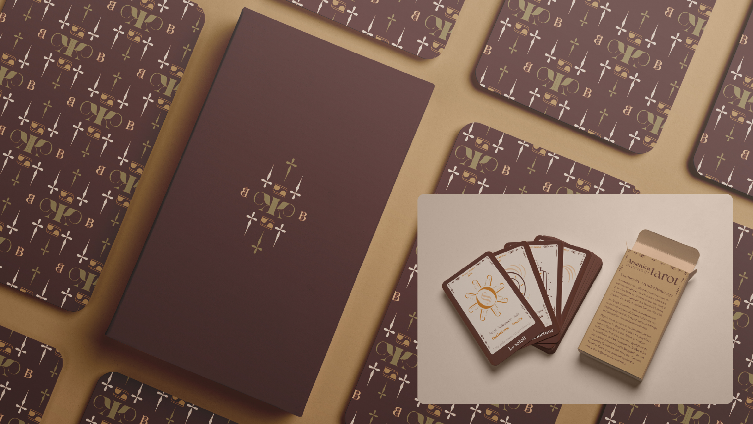 Création d’un spécimen typographique Arsenica lié à l’histoire des affiches italiennes, mêlant art nouveau et Art déco. La police de Francesco Canovero rappelle les cartes de tarot, présentées dans une boîte avec 14 instances variables. Les 78 cartes illustrent abstraitement les caractères, liant l’histoire des cartes de tarot à celle de la police de caractères. Un dépliant met de l’avant l’épaisseur des traits, renforçant le style art nouveau et art déco avec une touche moderne.