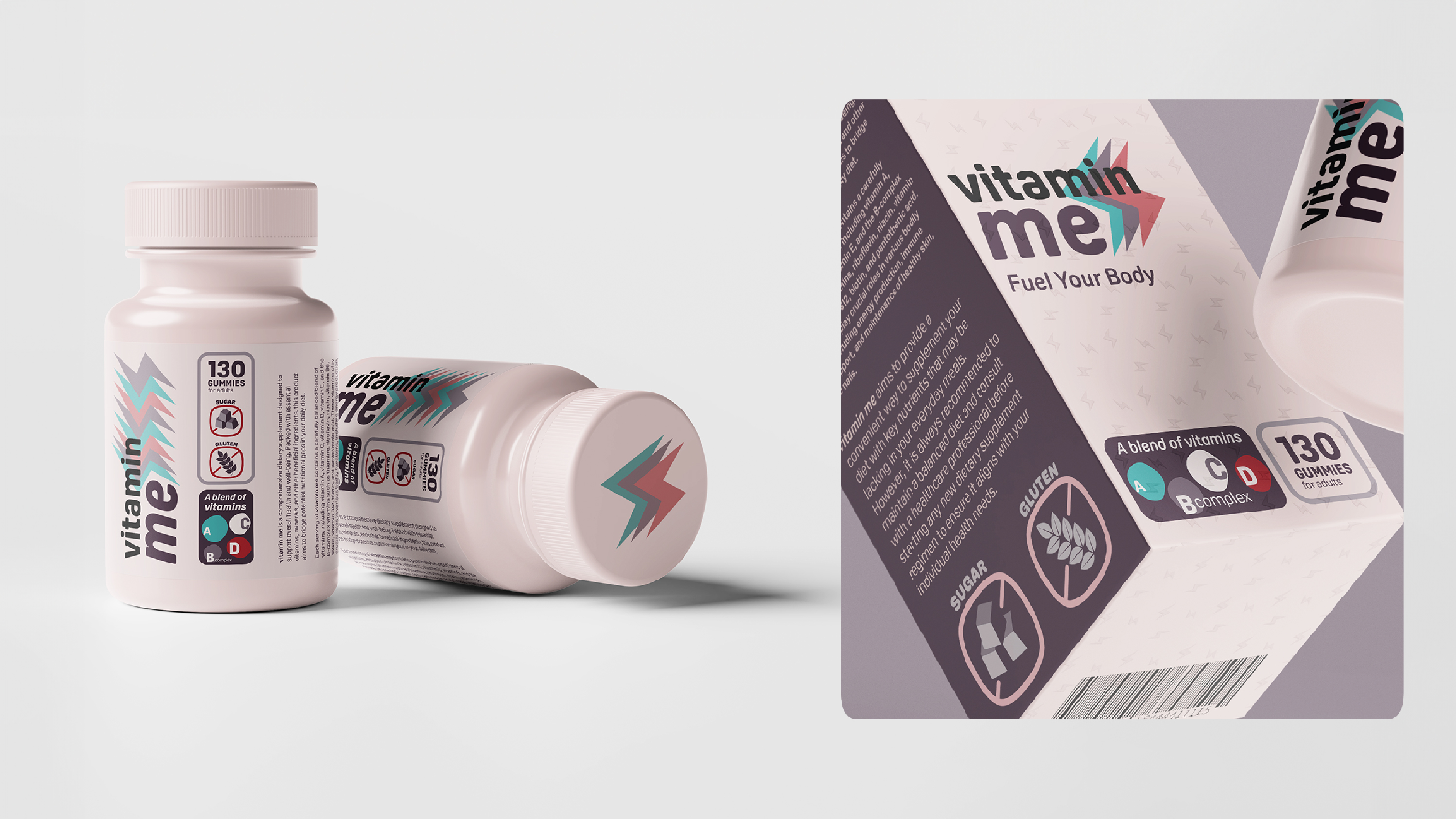 Vitamin Me souhaite une identité visuelle forte. Le logo doit évoquer santé, vitalité et efficacité, avec des couleurs attrayantes. Les emballages doivent allier information et cohérence visuelle, présentant clairement les avantages, instructions et ingrédients. Mon projet propose une palette équilibrée pour une universalité, une typographie ronde pour humaniser, et un éclair d’énergie symbolisant le soutien à la santé.
