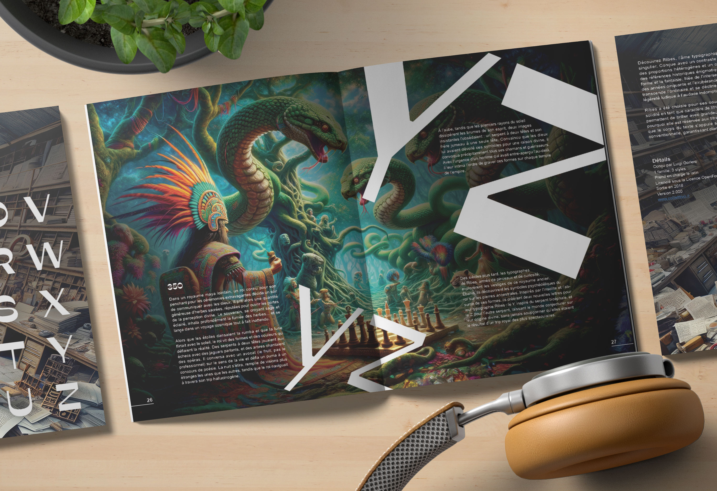 Ce projet met en valeur Ribes, une police mêlant l’élégance rétro des années 50 à l’exubérance du funk. Conçue pour se démarquer, elle présente un contraste inversé et des formes variées, disponibles en trois épaisseurs. Idéale pour les titres, Ribes s’associe à une police traditionnelle pour le corps du texte, assurant une lisibilité optimale. L’originalité du projet réside dans la création d’un livre où chaque lettre de l’alphabet, associée à une anecdote fictive, célèbre la créativité derrière Ribes. Le design engageant et l’humour subtil offrent une immersion captivante dans l’essence de cette typographie unique.